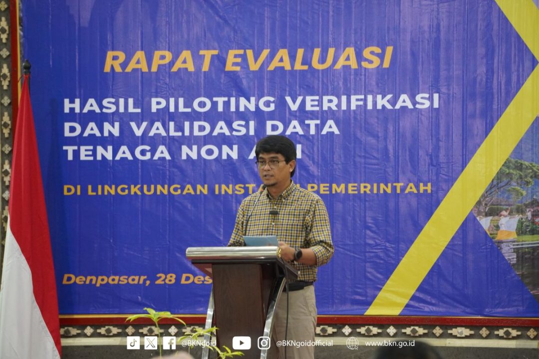 Denpasar – Humas BKN, Badan Kepegawaian Negara (BKN) melaksanakan kegiatan Evaluasi Hasil Piloting Verifikasi dan Validasi Data Tenaga Non ASN di Lingkungan Instansi Pemerintah pada Kamis (28/12/2023) bertempat di Kantor Regional X BKN, Denpasar. Acara diselenggarakan dalam rangka penyusunan Rancangan Peraturan Pemerintah (RPP) Manajemen ASN yang merupakan turunan dari Undang-Undang Nomor 20 Tahun 2023 tentang Aparatur Sipil Negara, serta Percepatan Penataan Tenaga Non-ASN.