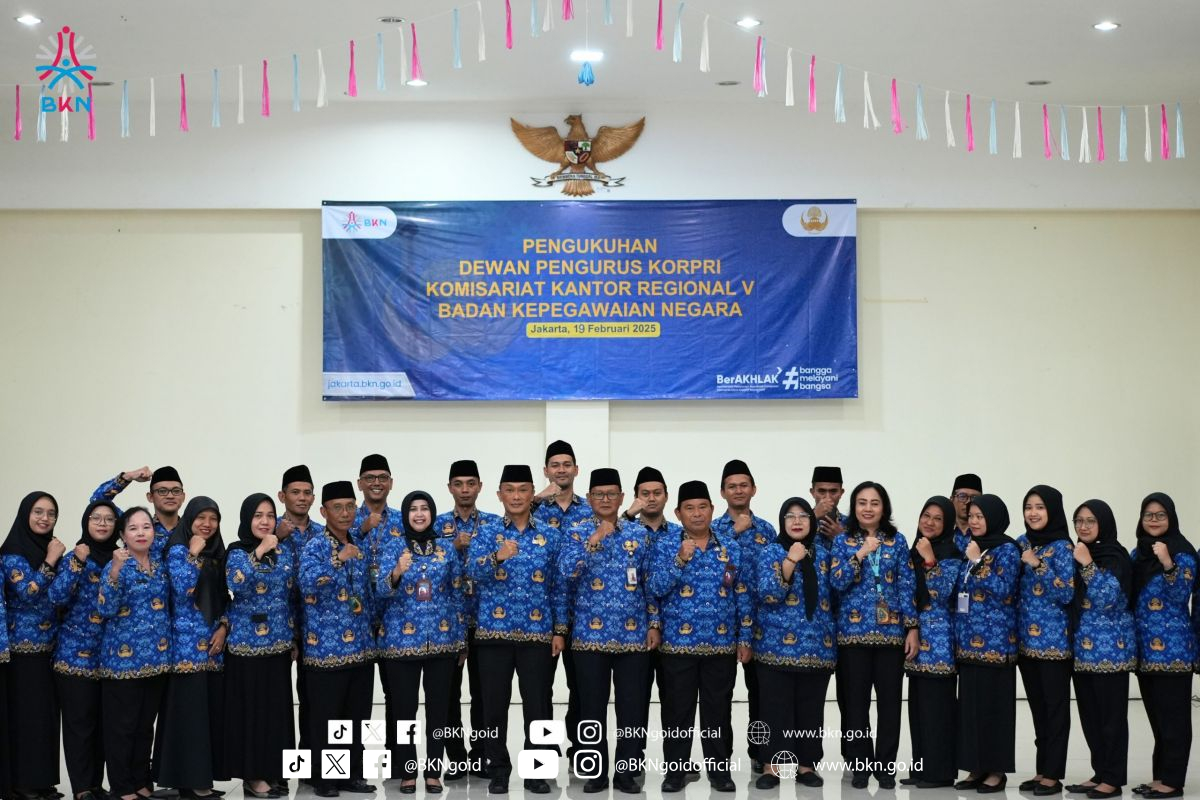 Jakarta – Humas BKN, KORPRI adalah wadah atau induk organisasi bagi seluruh ASN di Republik Indonesia sesuai dengan mandat Presiden sejak KORPRI didirikan pada 29 November 1971, dengan dua tugas utama KORPRI yaitu memberikan perlindungan hukum dan advokasi serta peningkatan kesejahteraan. Hal itu disampaikan Kepala Badan Kepegawaian Negara (BKN) sekaligus Ketua Umum Dewan Pengurus KORPRI Nasional Prof. Zudan Arif saat mengukuhkan Dewan Pengurus KORPRI Komisariat Kantor Regional V BKN Jakarta, di Kantor Regional V BKN Jakarta, Rabu (19/2/2025).