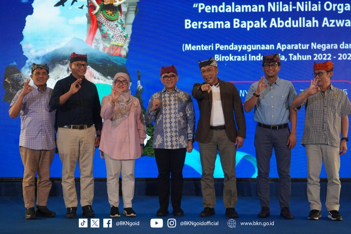 Banyuwangi – Humas BKN, Kepala Badan Kepegawaian Negara (BKN) Prof. Zudan Arif saat membuka Sharing Session bertajuk ‘Pendalaman Nilai-Nilai Organisasi’ bersama Menteri Pendayagunaan Aparatur Negara dan Reformasi Birokrasi (PANRB) periode 2022–2024 Abdullah Azwar Anas, mengajak seluruh pegawai BKN untuk memperkuat branding organisasi melalui internalisasi nilai-nilai inti BKN sebagai langkah percepatan reformasi birokrasi.