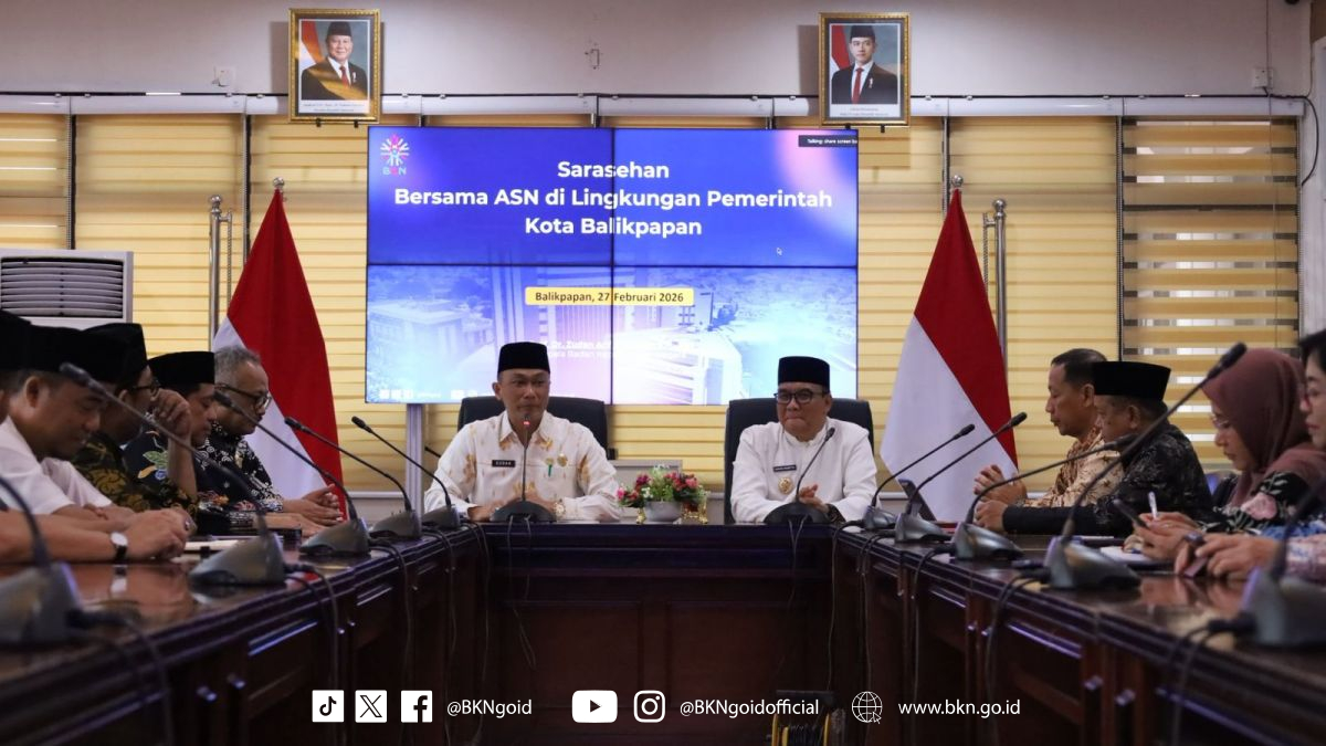 Balikpapan – Humas BKN, Di hadapan perwakilan Organisasi Perangkat Daerah (OPD) di lingkungan Pemerintah Kota Balikpapan dalam forum Sarasehan Kepegawaian di Kantor Wali Kota Balikpapan, Kepala Badan Kepegawaian Negara (BKN), Prof. Zudan, mengingatkan perangkat daerah agar pelaksanaan reformasi birokrasi berkontribusi konkret pada kualitas pelayanan publik dan kesejahteraan ASN. Ia mengarahkan agar percepatan transformasi birokrasi harus diwujudkan melalui layanan yang cepat, mudah, dan dapat diakses secara digital.