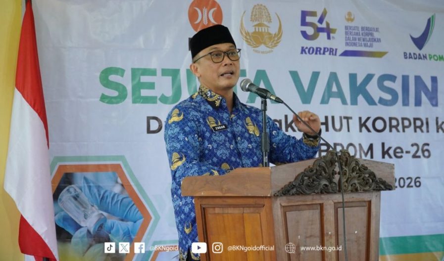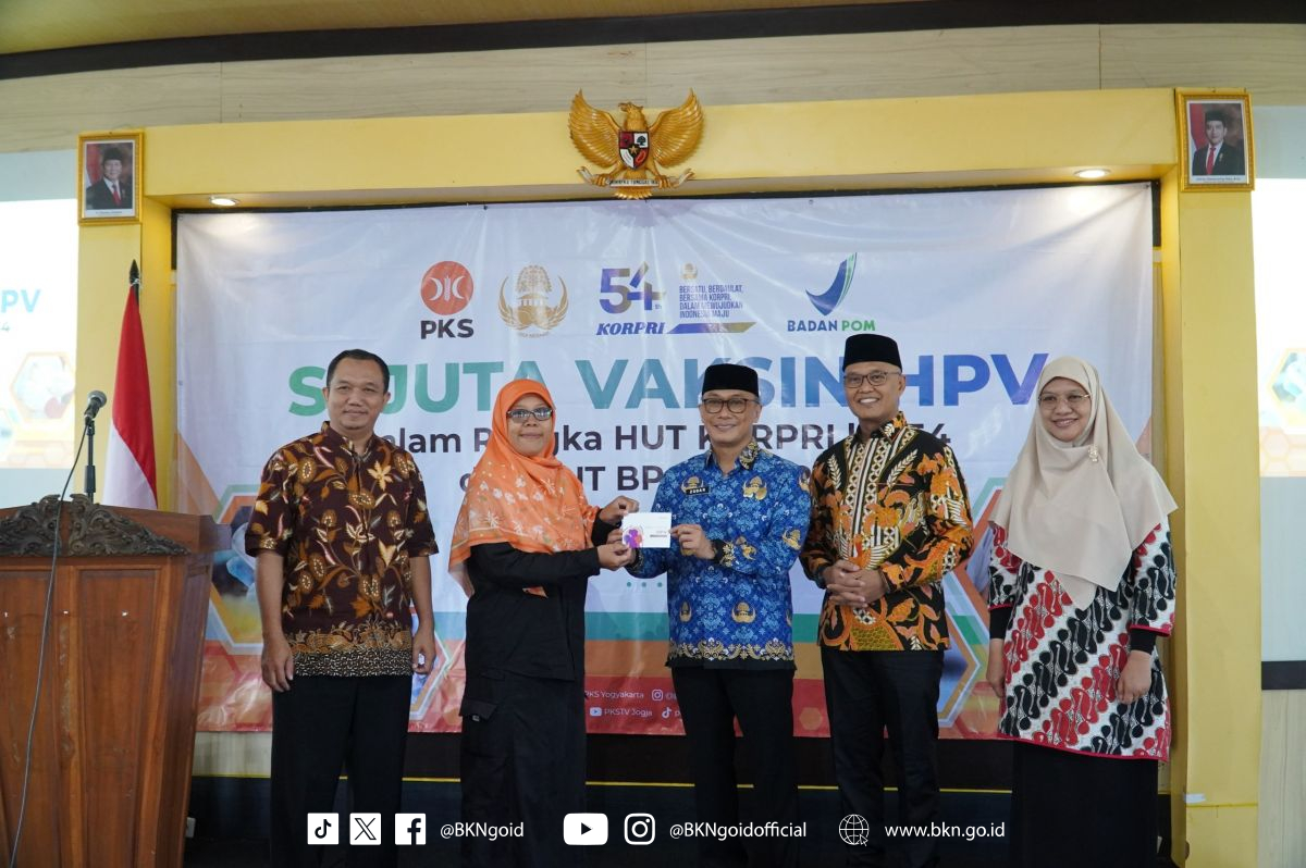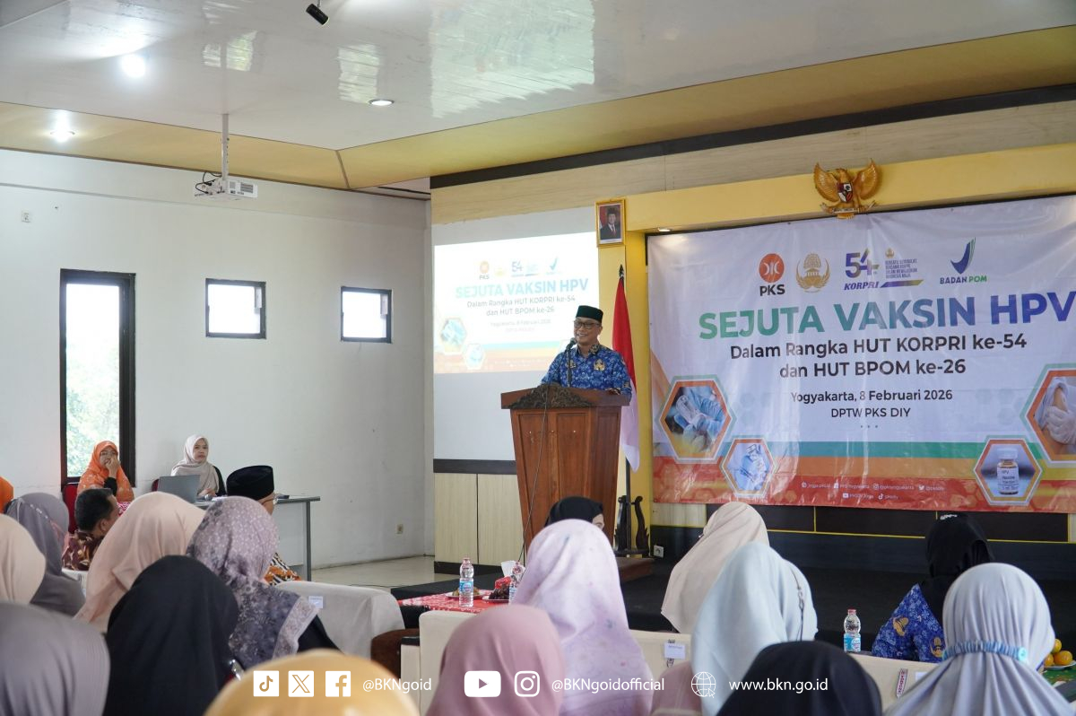 Yogyakarta – Humas BKN, Sebagai salah satu rangkaian HUT ke-54, Korps Pegawai Republik Indonesia (Korpri) menginisiasi langkah aktif dalam pencegahan kanker serviks melalui Program Sejuta Vaksin Human Papillomavirus (HPV). Program yang sudah berlangsung di berbagai instansi pemerintah sejak Desember 2025 ini, tidak hanya menyasar para Aparatur Sipil Negara (ASN), tetapi juga dibuka untuk masyarakat umum sebagai upaya memperluas perlindungan kesehatan perempuan.