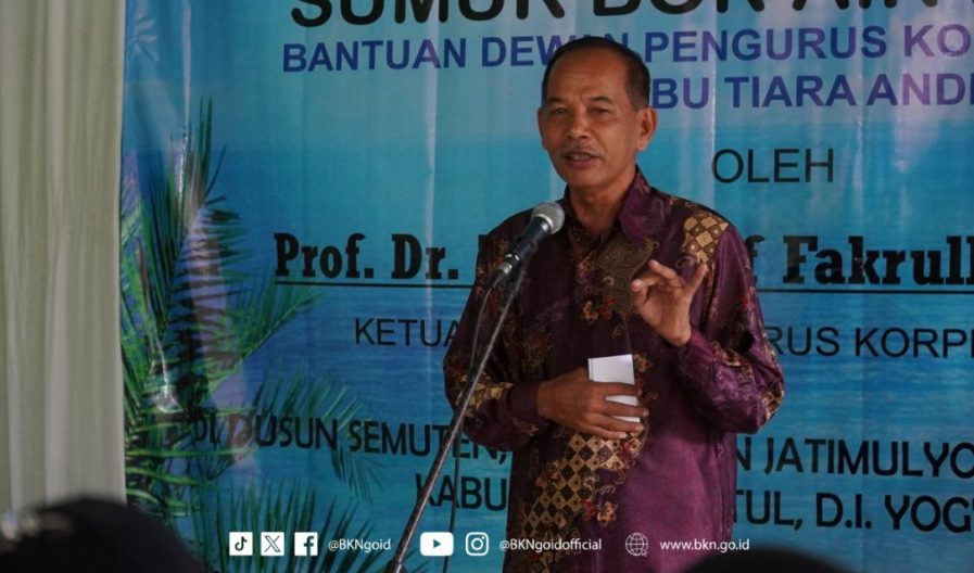 Yogyakarta – Humas BKN, Dewan Pengurus Korpri Nasional melalui Program Korpri Peduli menyalurkan bantuan pembangunan sumur bersih bagi masyarakat Dusun Semutan, Kabupaten Bantul, Daerah Istimewa Yogyakarta, berlangsung Minggu (08/02/2026). Bantuan ini merupakan bagian dari komitmen Korpri dalam mendukung pemenuhan kebutuhan dasar masyarakat, khususnya akses terhadap air bersih.