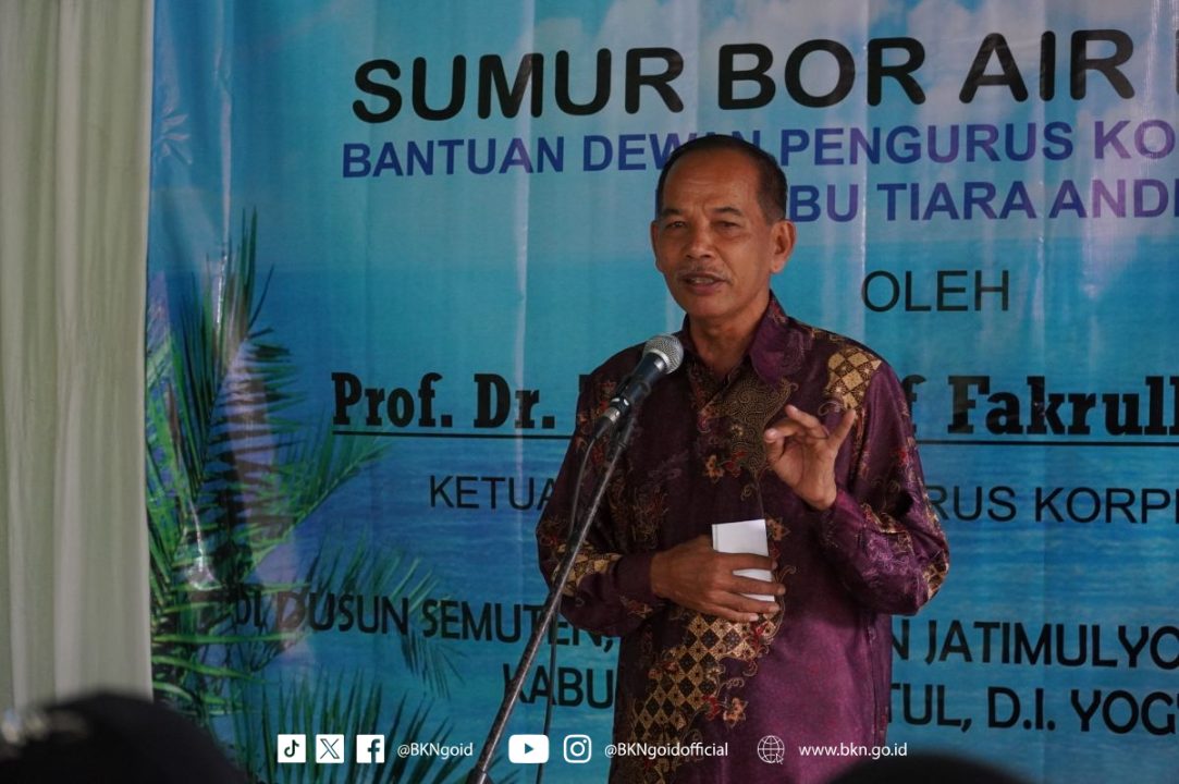 Ketua Umum Dewan Pengurus Korpri Nasional sekaligus Kepala Badan Kepegawaian Negara (BKN), Prof. Zudan, menyampaikan bahwa Program Korpri Peduli merupakan bentuk kepedulian ASN kepada masyarakat. Melalui program ini, Korpri berupaya menghadirkan manfaat yang dapat dirasakan secara langsung, tidak hanya oleh ASN, tetapi juga oleh masyarakat luas. “Korpri Peduli diarahkan untuk membantu pemenuhan kebutuhan dasar masyarakat. Akses air bersih menjadi salah satu prioritas karena berkaitan langsung dengan kesehatan dan kualitas hidup,” ujar Prof. Zudan.