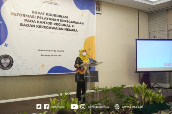 “Reformasi pelayanan perlu dilakukan dengan terintegrasi, total dan berkesinambungan. Integrity in the real definition perlu dimaknai dan diamalkan oleh setiap ASN,” terangnya dalam Rapat Koordinasi Reformasi Pelayanan Kepegawaian pada Kantor Regional XI BKN Manado yang dilaksanakan di Magnolia Ballroom, Hotel Courtyard by Marriott Bandung, Kamis (10/6/2021). Acara dihadiri oleh perwakilan BKD/BKPP/BKPSDM di wilayah kerja Kantor Regional (Kanreg) XI BKN, Kepala Kanreg XI BKN Manado Dedi Herdi dan Kepala Kanreg III BKN Bandung Tauchid Djatmiko.