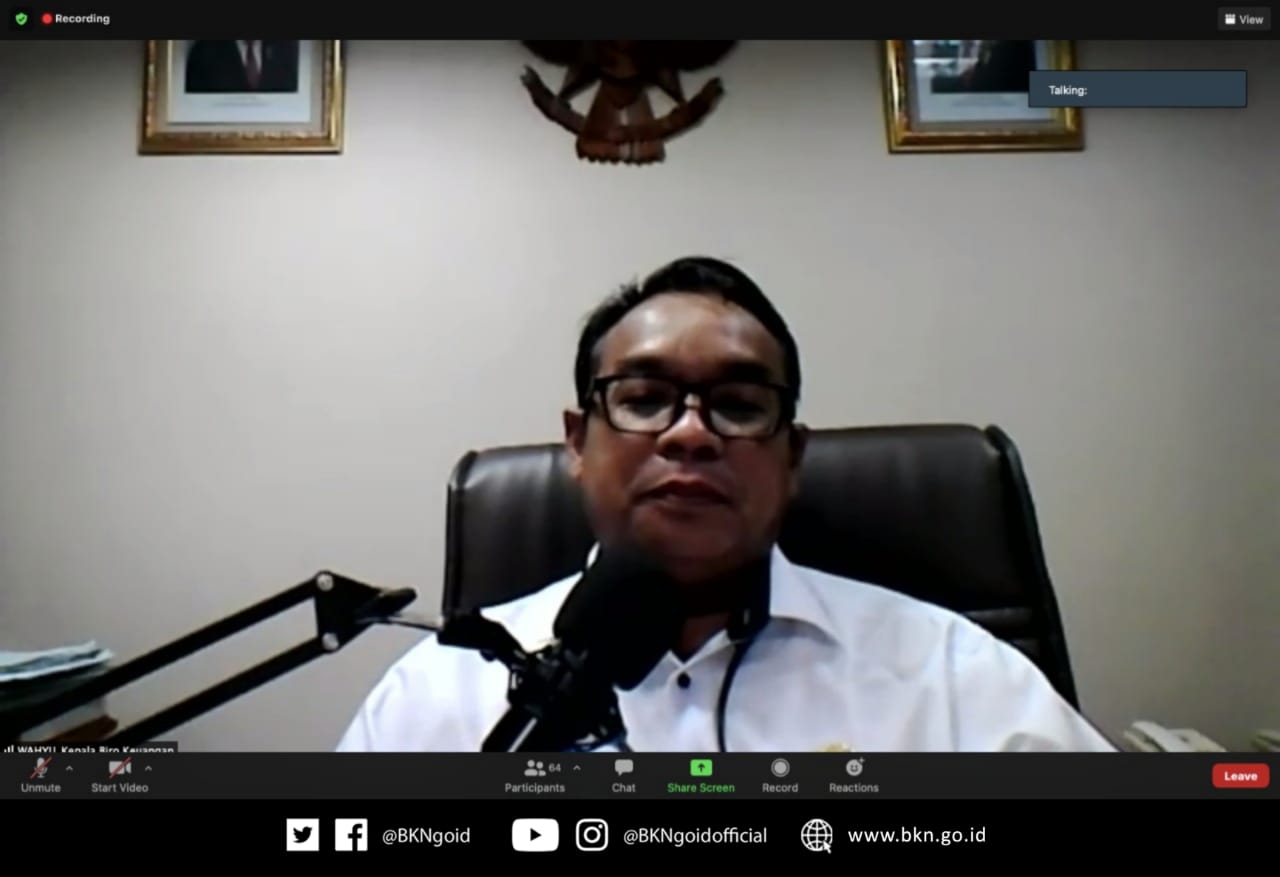 Diskusi ini juga membahas terkait diberlakukannya Peraturan BKN Nomor 1 Tahun 2021 tentang Perubahan atas Peraturan BKN Nomor 5 Tahun 2020 tentang Tata Cara Pemberian, Pemotongan dan Penghentian Pembayaran Tunjangan kinerja di Lingkungan BKN. Wahyu juga menyampaikan, bahwa diperlukan kesamaan pemahaman di level unit pusat, dalam hal ini seluruh unit JPT Pratama, Kepala Kantor Regional, dan Pusat Pengembangan Kepegawaian ASN terhadap perbedaan Peraturan BKN Nomor 5 Tahun 2020 dengan Peraturan BKN Nomor 1 Tahun 2021 terkait dengan waktu approval tunjangan kinerja, yang semula dilakukan sesuai dengan bulan atau triwulan menjadi sistem periodik.