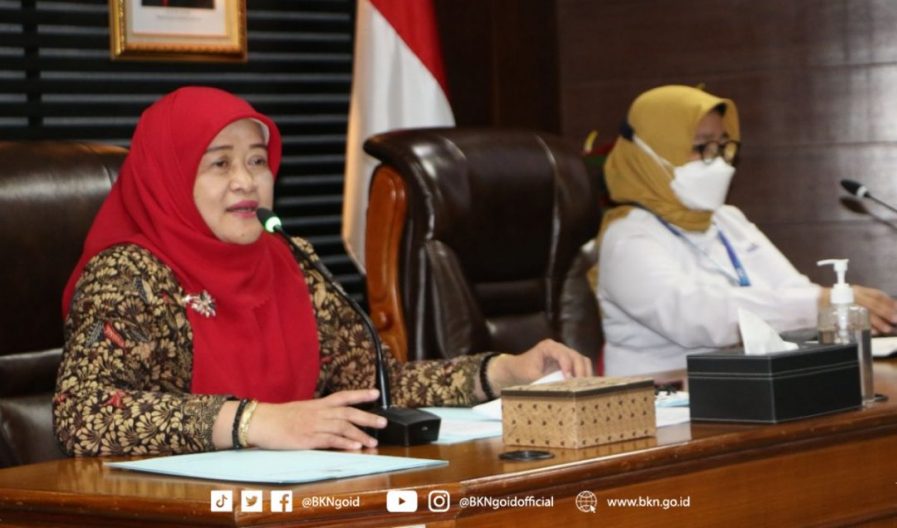 Jakarta – Humas BKN, Badan Kepegawaian Negara (BKN) melakukan kegiatan Pelepasan Purnabakti bagi 19 pegawai yang akan memasuki masa purnabakti TMT 1 November 2022, Senin (31/10/2022) di Kantor Pusat BKN Jakarta. Adapun kesembilan belas pegawai yang akan mengakhiri masa pengabdiannya tersebut meliputi 11 (sebelas) pegawai yang bertugas di Kantor Pusat BKN Jakarta dan 8 (delapan) pegawai yang bertugas di Kantor Regional BKN.