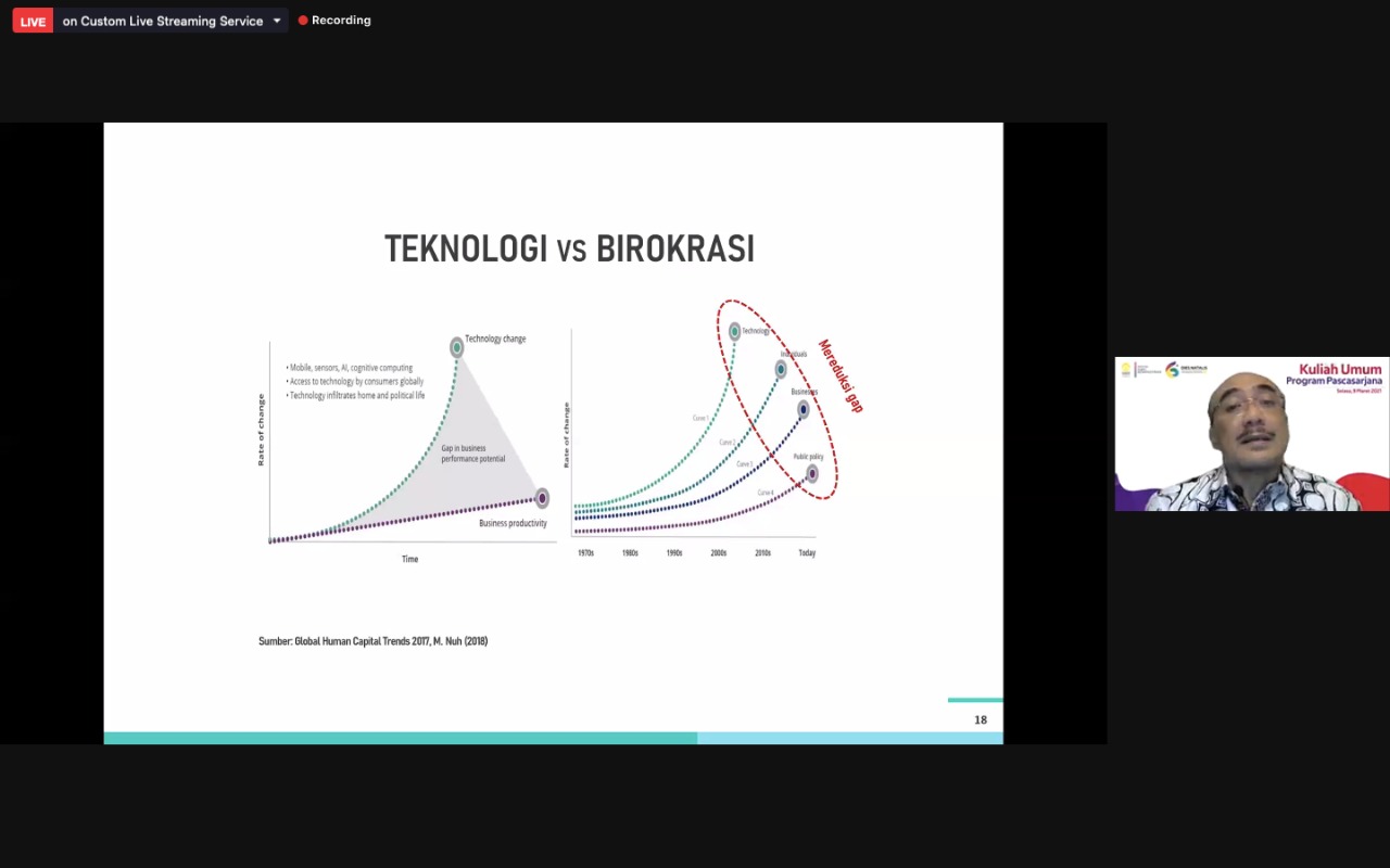 Dalam kuliah umum tersebut, Kepala BKN menyampaikan bahwa dengan banyaknya pekerjaan yang tergantikan dengan Teknologi Informasi, telah mengubah seluruh konsep birokrasi. Dibutuhkan suatu proses dari hierarki menjadi networking. “Hal ini tentu dilakukan bertahap, perlu proses bisnis yang memadai dengan pemeliharaan sistem untuk public service yang lebih baik,” terangnya.