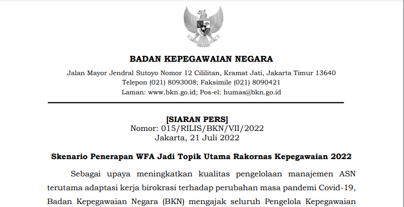 [SIARAN PERS] Nomor: 015/RILIS/BKN/VII/2022