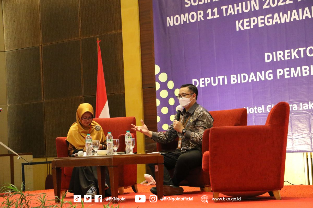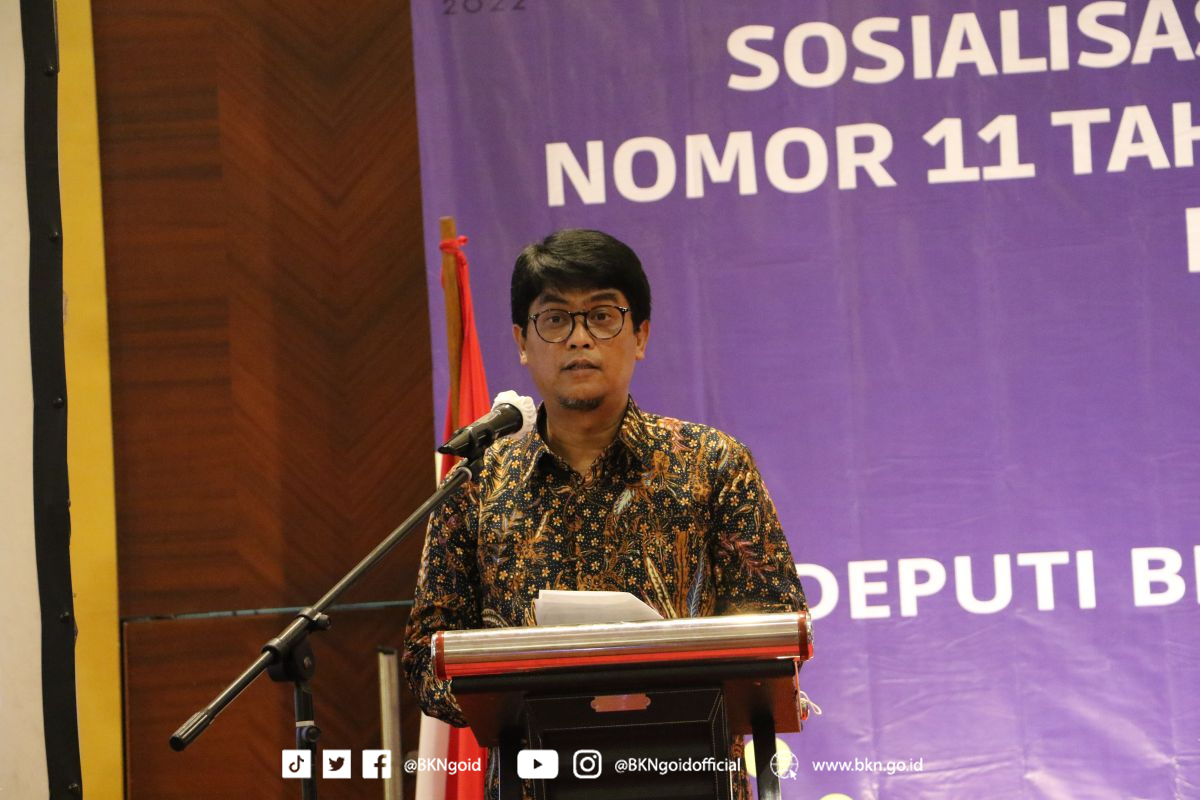Haryomo menyebutkan bahwa sosialisasi ini dapat menyamakan persepsi dari aspek pembinaan pegawai secara fungsional dan profesional. Ia juga meminta perwakilan Kantor Regional BKN yang hadir agar dapat meneruskan sosialisasi Peraturan BKN Nomor 11 Tahun 2022 ini kepada instansi pengelola kepegawaian di masing-masing wilayah kerjanya. “Saya berharap pedoman ini dapat diterapkan baik bagi instansi pembina jabatan fungsional maupun instansi pengguna,” imbuhnya.