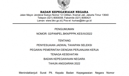 Menindaklanjuti Surat Plt. Kepala Badan Kepegawaian Negara Nomor 38310/B-KS.04.01/SD/K/2022 tanggal 15 November 2022 hal Penyesuaian Jadwal Pelaksanaan Seleksi…