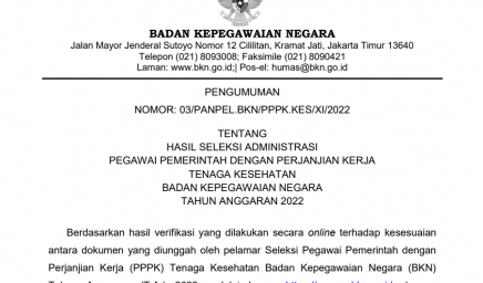 Pengumuman Hasil Seleksi Administrasi PPPK Tenaga Kesehatan BKN TA 2022