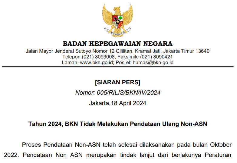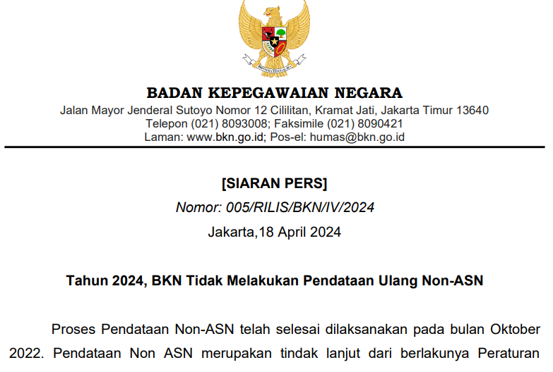 Tahun 2024, BKN Tidak Melakukan Pendataan Ulang Non-ASN