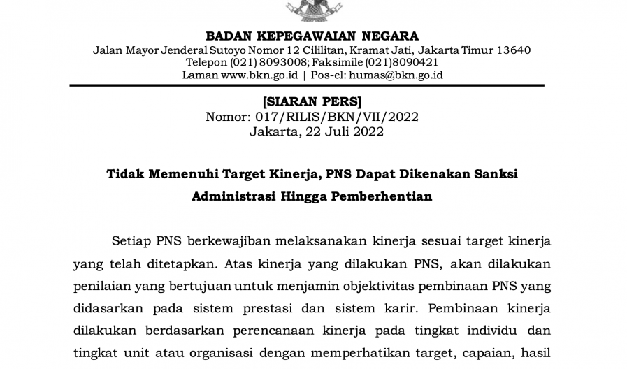 Nomor: 017/RILIS/BKN/VII/2022 Jakarta, 22 Juli 2022