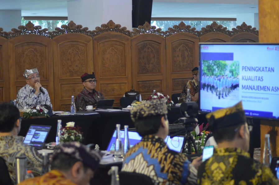 Banyuwangi-Humas BKN, Badan Kepegawaian Negara (BKN) saat ini tengah berupaya melakukan peningkatan layanan kepegawaian dengan melakukan pemangkasan alur proses bisnis seperti layanan kenaikan pangkat, pindah instansi, dan pensiun. Hal ini disampaikan oleh Plt. Kepala BKN Bima Haria Wibisana dalam Rapat Koordinasi (Rakor) Paguyuban Kementerian Pendayagunaan Aparatur Negara dan Reformasi Birokrasi pada Kamis (24/11/2022) di Pendopo Kantor Bupati Banyuwangi. Selain BKN, Rakor ini juga dihadiri oleh anggota Paguyuban Kemenpan RB lain seperti LAN RI, ANRI dan KASN.