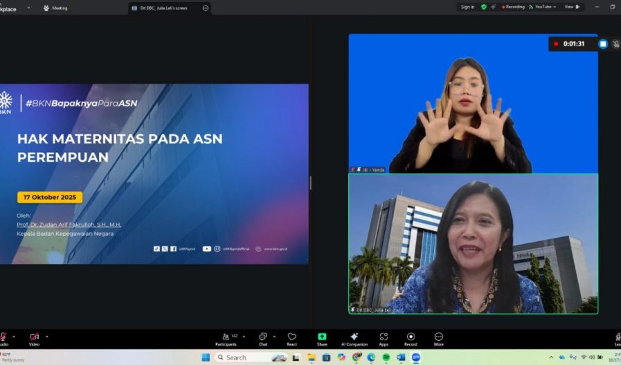 Di samping itu, Direktur Disiplin, Budaya Kerja, dan Citra Institusi ASN, yakni Julia Leli menekankan dukungan BKN terhadap kebijakan maternitas bagi semua perempuan yang akan mendaftar sebagai ASN maupun ASN Perempuan mencakup perlindungan aspek masa kehamilan dan persalinan hingga mencakup pendampingan dalam aspek kehidupan keluarga ASN Perempuan. “BKN mendukung sekali kebijakan maternitas karena untuk mewujudkan Indonesia Emas kita membutuhkan generasi muda yang berkualitas. Hal itu bisa tercapai apabila ada perlindungan bagi seorang ibu dengan sifat keibuannya. Kami juga bekerja sama dengan Kementerian Agama dalam program pendampingan bagi ASN perempuan yang menuju proses pernikahan. Jika di dalam pernikahannya terjadi permasalahan, kami juga telah menjajaki kerja sama dengan BP4 untuk memberikan pendampingan bagi ASN perempuan yang mengalami masalah dalam rumah tangganya”, ungkap Leli secara daring, Jumat (17/10/2025).