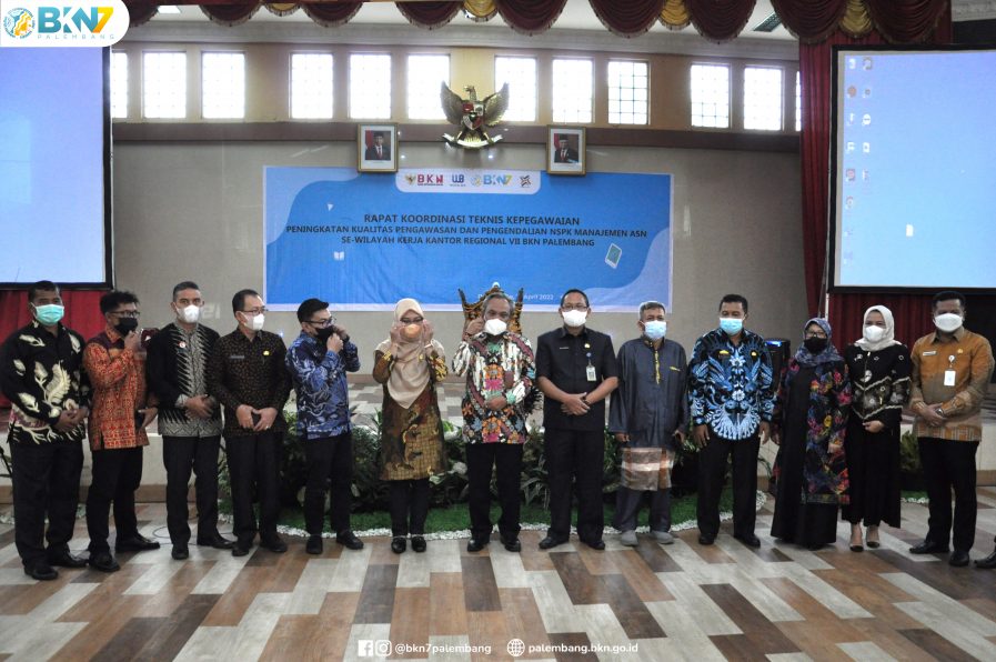 Jakarta-Humas BKN, Direktorat Pengawasan dan Pengendalian IV BKN bersama Kantor Regional (Kanreg) VII BKN Palembang menggelar Rapat Koordinasi Teknis Kepegawaian Peningkatan Kualitas Pengawasan dan Pengendalian Norma Standar Prosedur dan Kriteria (NSPK) Manajemen ASN untuk Badan Kepegawaian Daerah/Badan Kepegawaian & Pengembangan Sumber Daya Manusia/Badan Kepegawaian Pendidikan dan Pelatihan se-wilayah kerja Kanreg VII BKN Palembang di Gedung Serba Guna Kanreg VII BKN pada Kamis (21/04/2022).