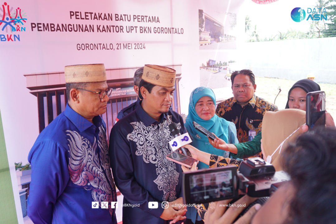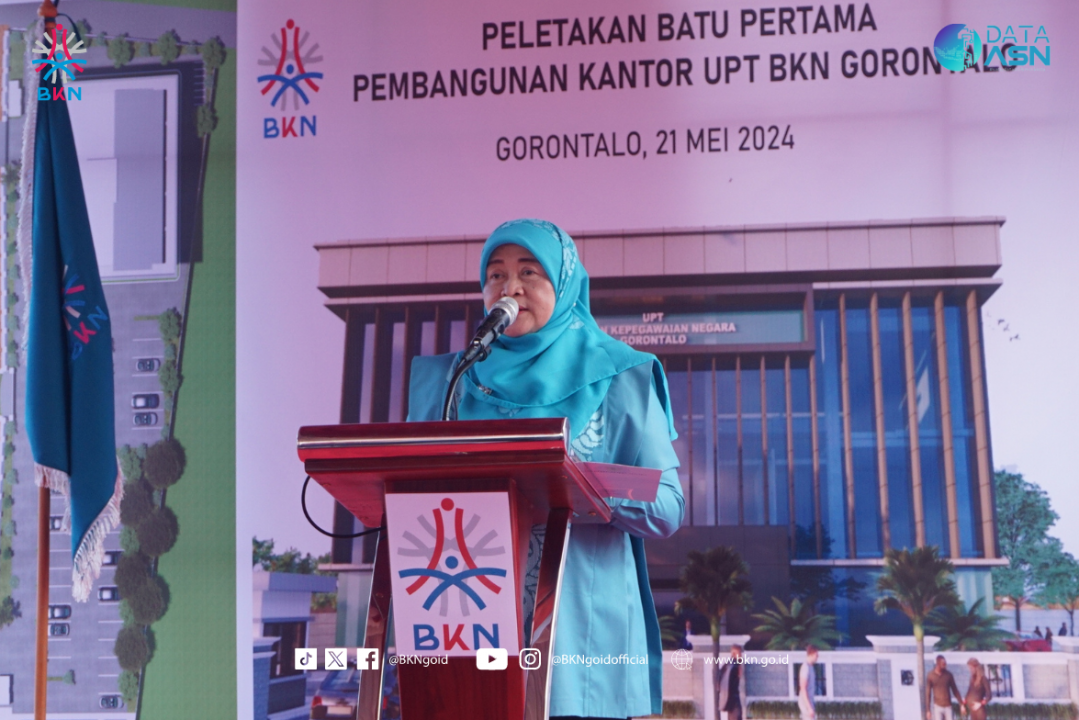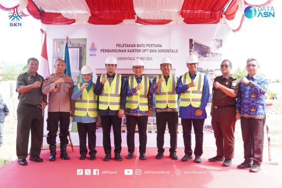 Pada kesempatan yang sama, Sekretaris Utama BKN Imas Sukmariah mengungkapkan rasa syukur atas hajat yang segera terlaksana. “Hibah berupa tanah yang diberikan oleh Pemerintah Provinso Gorontalo merupakan bentuk sinergi yang selanjutnya kami manfaatkan dengan baik. Pembangunan yang bersumber dari Surat Berharga Syariah Negara Project Based Sukuk (SBSN-PBS) ini ditargetkan selesai di penghujung tahun 2024 agar tahun mendatang dapat segera difungsikan,” terangnya.