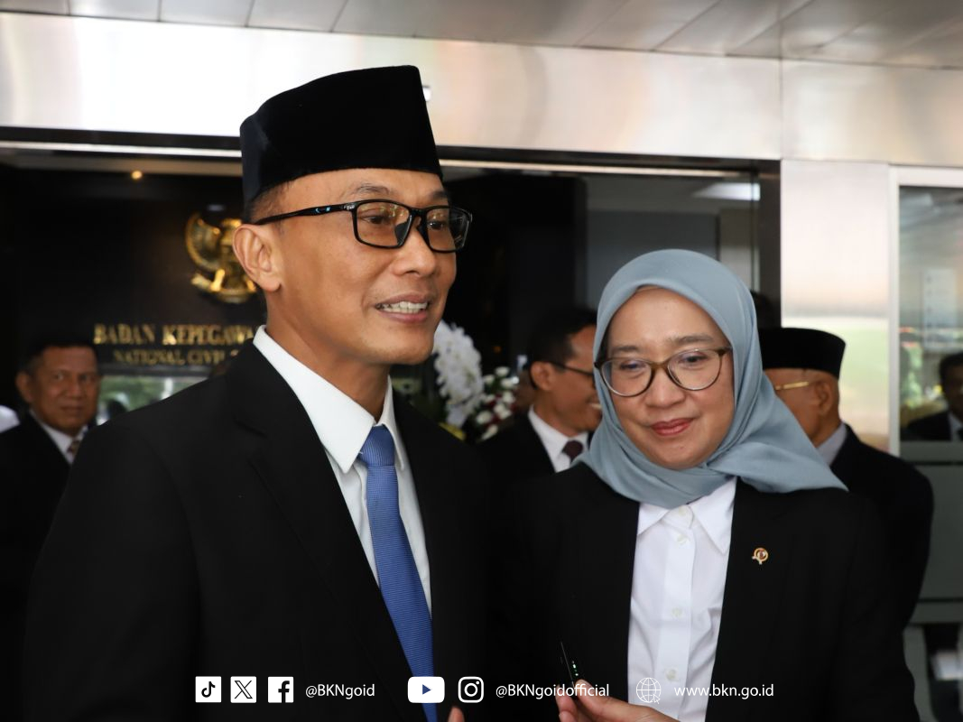 Jakarta – Humas BKN, Setelah melalui Seleksi Terbuka Pengisian Jabatan Kepala Badan Kepegawaian Negara (BKN), Prof. Zudan Arif Fakrulloh resmi dilantik menjadi Kepala BKN pada Selasa, (07/01/2025) di Kantor BKN Pusat, Jakarta. Pelantikan ini sekaligus juga sebagai momentum pembaharuan bagi BKN setelah 10 (sepuluh) tahun yang lalu pelantikan Kepala BKN terakhir dilakukan.