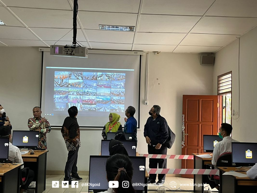 Pangkalpinang – Humas BKN, Wakil Kepala Badan Kepegawaian Negara (BKN) Supranawa Yusuf melakukan monitoring pelaksanaan seleksi Pegawai Pemerintah dengan Perjanjian Kerja (PPPK) Tenaga Kesehatan Provinsi Kep. Babel Tahun 2022 di dua titik lokasi (tilok) ujian, yaitu UPT Pangkalpinang dan Poltekkes Kemenkes Pangkalpinang. Seleksi CAT di kedua tilok dijadwalkan akan berlangsung pada 09 – 16 Desember 2022.