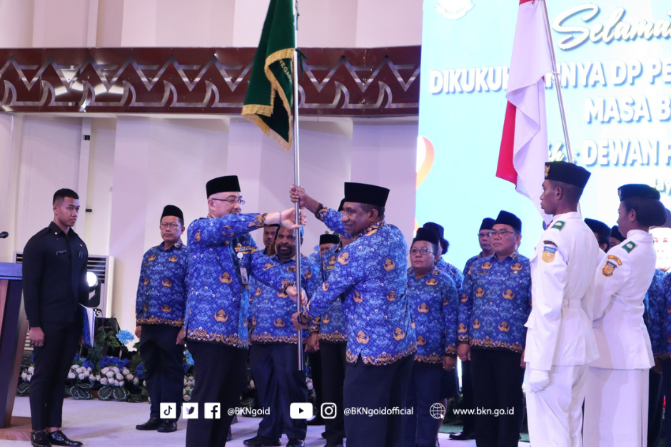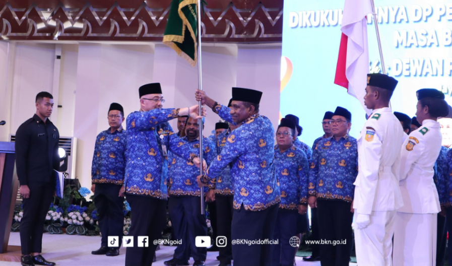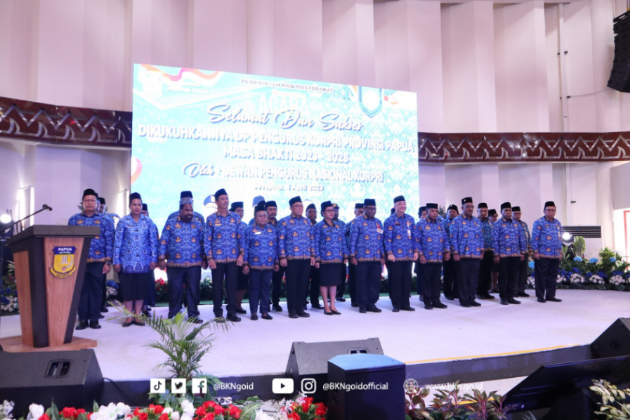 Jayapura-Humas BKN, Pengukuhan Dewan Pengurus Korpri Provinsi Papua Periode 2023-2028 telah dilaksanakan pada Senin (03/4/2023) di Gedung Papua Youth Creative Hub. Wakil Ketua Umum DPN Korpri, Bima Haria Wibisana yang mewakili Ketua Dewan Pengurus Nasional (DPN) Korpri, mengukuhkan secara langsung Dewan Pengurus Korpri Provinsi Papua. Acara pengukuhan tersebut dihadiri oleh Plh Gubernur Papua, Ridwan Rumasukun bersama perwakilan Forkopimda, para pimpinan OPD dan ASN Pemprov Papua.