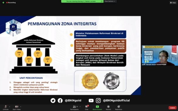Jakarta – Humas BKN, Kepala Badan Kepegawaian Negara (BKN) Bima H. Wibisana mengatakan bahwa pelaksanaan Zona Integritas (ZI) menuju Wilayah Bebas dari Korupsi (WBK) dan Wilayah Birokrasi Bersih dan Melayani (WBBM) bukanlah sebagai tujuan, tetapi sebagai prasyarat dalam membangun birokrasi. Hal ini disampaikan pada Pencanangan Bersama Pembangunan Zona Integritas Kantor Regional (Kanreg) V BKN Jakarta, Kanreg VI BKN Medan, Kanreg XII BKN Pekanbaru dan Kanreg XIII BKN Banda Aceh menuju WBK dan WBBM Tahun 2021, Rabu (7/04/2021).